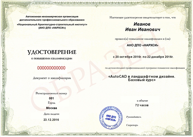 AutoCAD в ландшафтном дизайне. Базовый курс (72ч)