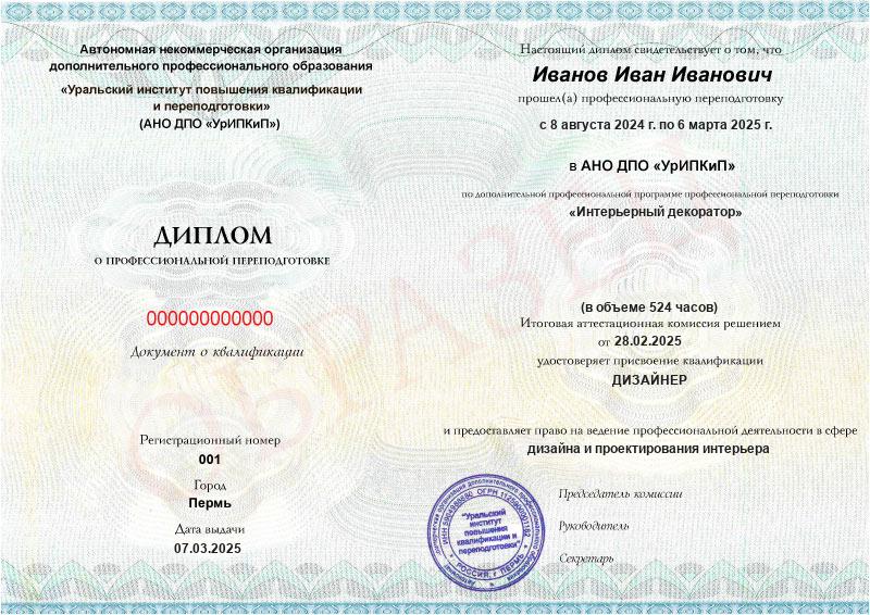 Да, дипломы и удостоверения оформляются в соответствии с действующим законодательством РФ. Документы печатаются на специальных бланках, заверяются печатью АНО ДПО «УрИПКиП».