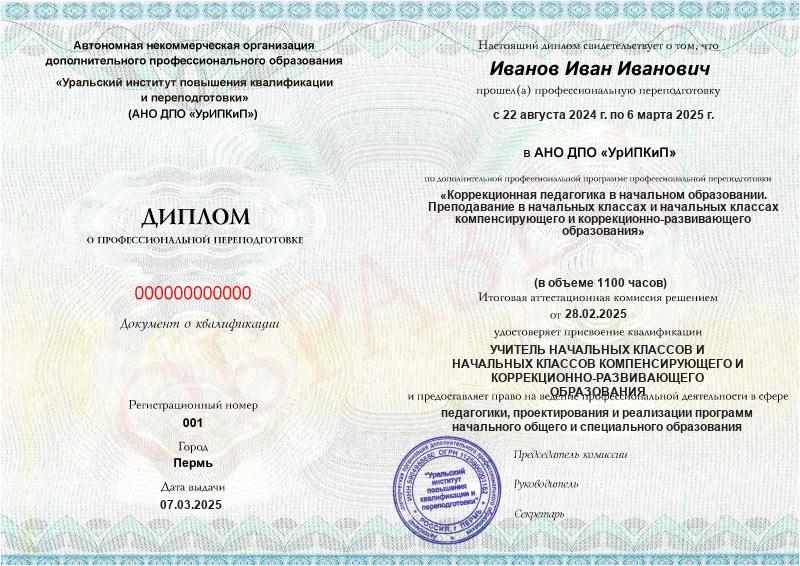 Да, дипломы и удостоверения оформляются в соответствии с действующим законодательством РФ. Документы печатаются на специальных бланках, заверяются печатью АНО ДПО «УрИПКиП».