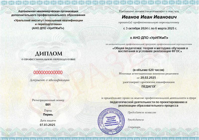 Да, дипломы и удостоверения оформляются в соответствии с действующим законодательством РФ. Документы печатаются на специальных бланках, заверяются печатью АНО ДПО «УрИПКиП».