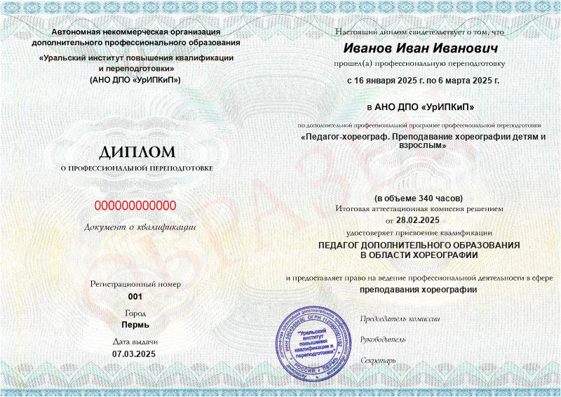 - Образец диплома о профессиональной переподготовке.