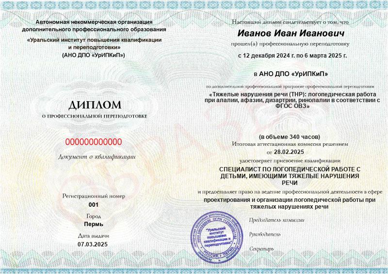 Да, дипломы и удостоверения оформляются в соответствии с действующим законодательством РФ. Документы печатаются на специальных бланках, заверяются печатью АНО ДПО «УрИПКиП».