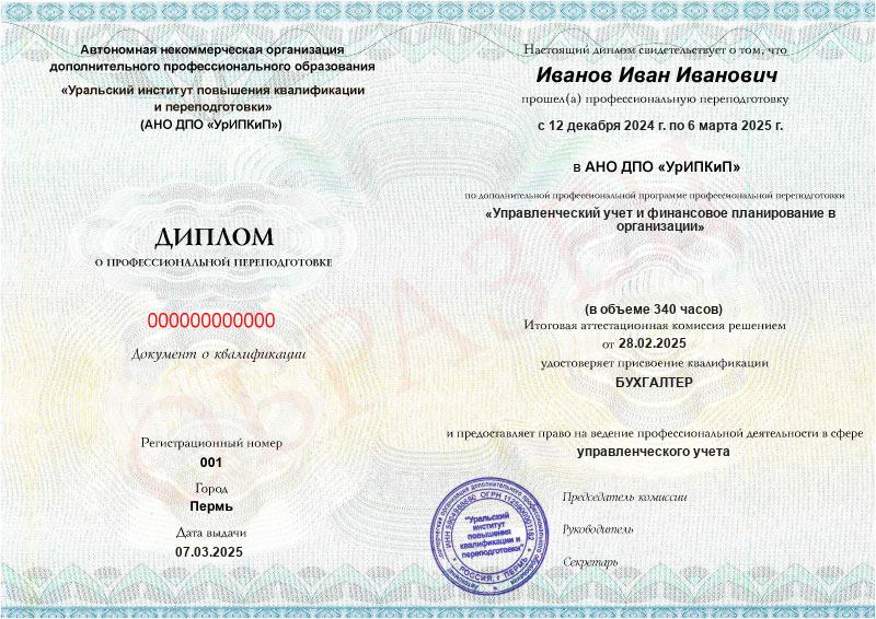 Да, дипломы и удостоверения оформляются в соответствии с действующим законодательством РФ. Документы печатаются на специальных бланках, заверяются печатью АНО ДПО «УрИПКиП».