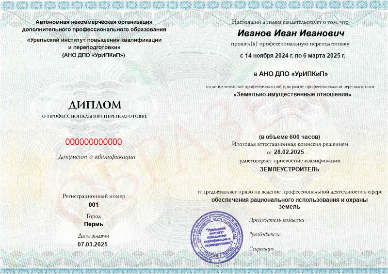 Да, дипломы и удостоверения оформляются в соответствии с действующим законодательством РФ. Документы печатаются на специальных бланках, заверяются печатью АНО ДПО «УрИПКиП».